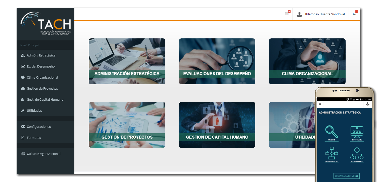 TACH es un software de gestión de capital humano, que sirve para llevar a la empresa u organismo social, de la estrategia a la ejecución, con base en objetivos e indicadores concretos y medibles, monitoreando el desempeño con relación a las metas trazadas.